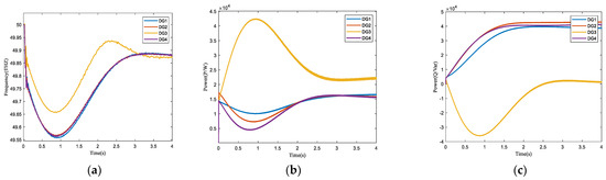 To verify the robustness of the microgrid, both the activity and reactivity of the system are increased to match the load variation when the load increases under the same conditions, assuming that the dynamic response of the load can be accessed at the microgrid test system with stable operation at the rated frequency.
