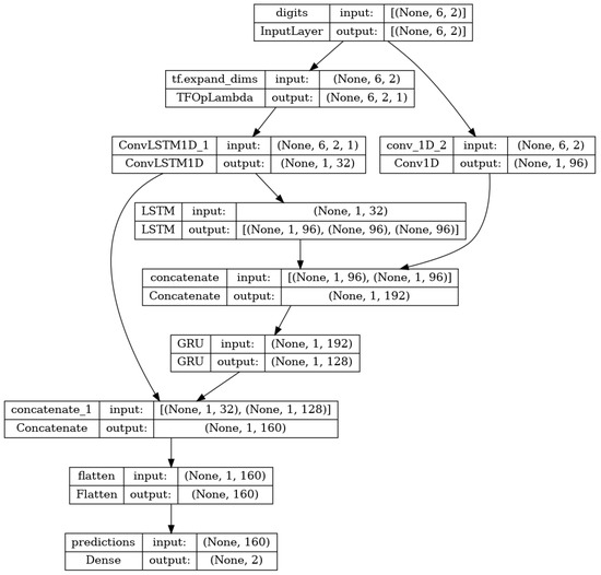 Figure 2 is robust enough to learn and predict unseen data—i.e., that it has the capacity for generalization. The reader may remark that several convolutions were applied to eliminate the data outliers. LSTM and GRU are the main layers to create the memory inside the proposed model. We have demonstrated the capacity of this architecture by testing on several popular time-series methods.