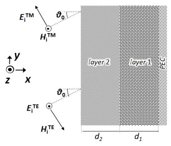 The absorber is illuminated by a transverse magnetic (TM) or transverse electric (TE) polarized plane wave with incidence angle θ0, as shown in Figure 1. The absorber is supposed to be of infinite dimensions along the y- and z- axes.