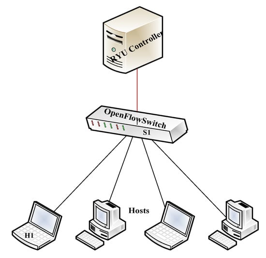 The proposed SDN-CIFE system was tested. The experimental environment comprised an Intel processor i5-6200U@2.30–2.40Ghz with 4GB RAM and 500GB SSD running OS Ubuntu 18.04 LTS. RYU-4.28 SDN controller and Python version 2.7.12 were installed and configured for different SDN network scenarios. The Python programs required during the experiment were written using the Gedit text editor. We also used Wireshark-2.2.6 to capture and inspect the network packets forwarded among hosts and switches.