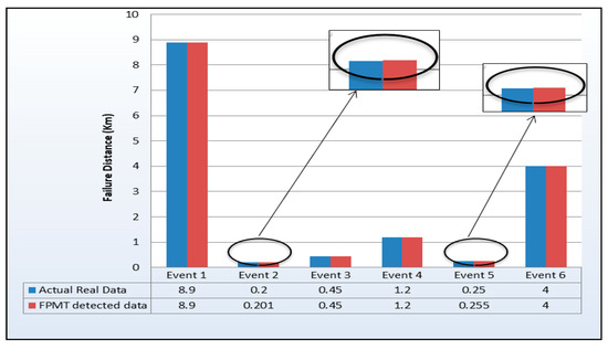 As stated in the experimental investigations shown in Figure 14, the average tolerance from the actual fault location is 1 to 5 m. Figure 15 shows the deviation measurements at each event.