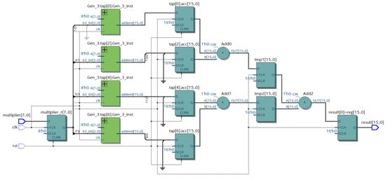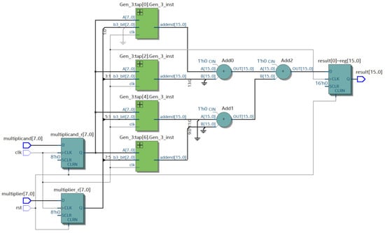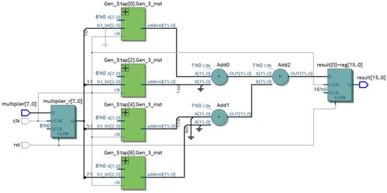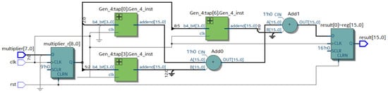 RTL of a modified Booth’s algorithm implementing multiplication by a constant and synthesized by Quartus Prime for n = 8.