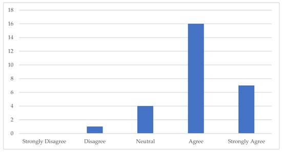 Figure 9 shows the conformance degree of the respondents regarding the functionalities that the hardware fulfils, where 1 is strongly disagree and 5 is strongly agree. In other words, after observing the functioning of the hardware with respect to its main functionalities (gas detection, opening the window, and alerting the inhabitants, if necessary), 82% of the participants agreed the system hardware provides a suitable solution for the problem addressed. Adding all the people who expressed impartiality to this group, it can be affirmed that 96% are positive towards the functionalities of the system. The refusal of one person and the impartiality of four people could be because they do not have the problem of pollution in their cities as is recognised in Quito, the city taken as the focus of this work. Another possible reason could be that it is not a real system.