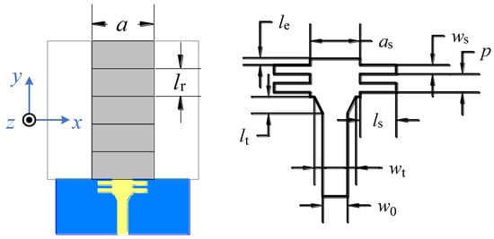 For verification of the CSIW section, Figure 4 presents the layout of the CSIW and simulated results of the back-to-back structure of the MSL-CSIW transition. Please note that the parameter values in Figure 4 are the same as that in Figure 2, and only more periods of CSIW units are added in Figure 4. The host waveguide width (as) influences the cut-off frequency of the TE10-like mode, and the length of open circuit stubs (ls) is usually quarter wavelength []. The width of open circuit stubs (ws) is half of the period of CSIW units (p).