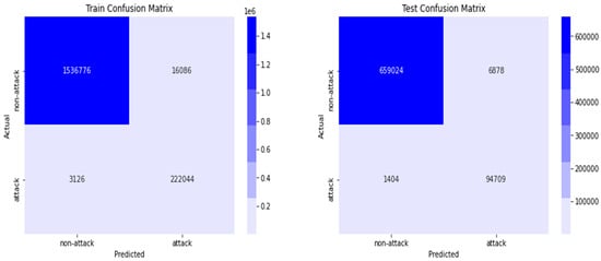The core objective of utilizing different datasets is to train the proposed system for different types of attacks and make it more robust against suspicious traffic activities. Figure 4 and Figure 5 demonstrate the final results of the binary form and multiclass form of the confusion matrix.