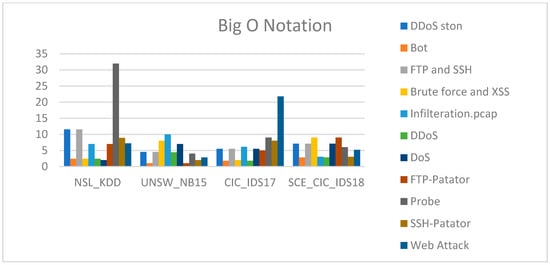 Figure 8 explains system complexity with respect to the applied datasets. The proposed meta-model reduces the number of features by selecting only the affected and sufficient features. In addition, in the training phase, the meta-model system selects the results of the best-predicted classifiers to be used in the testing phase.
