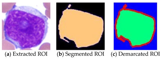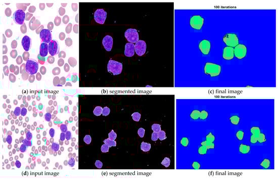 where and . According to Equations (12) and (13), the value of constant and the representative biased field B is updated. This way, the energy is reduced, and the demarcated image is obtained. This demarcated image provides a different perceptive to the analysis of each cytological component of the image. In the next section, the obtained segmented image is discussed.