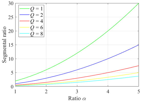 As can be seen from Equations (4), (7) and (8), the transmitting coil current is related to the reflected impedance, which is related to coupling coefficient k. According to Ampere’s law, the transmitting coil current is related to the EMF leakage. Therefore, the IPT system should adjust the transmitting coil current to satisfy EMF standards. In order to further describe the reflective properties, the segmentation ratio (SR) is defined as the ratio of the coupled branch current to the uncoupled branch current, which can be described as