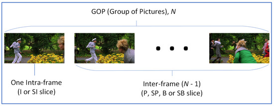 The iterative period of selecting the Intra-frame group of pictures(GOP), i.e., the gap between Intra-frames shown in Figure 2, is determined by encoding configuration. The small number of GOP means the target bitrate of the encoding file is big enough and this configuration is chosen in case a frequent scene change occurs in a video or a video content requires more details and less block noise after decoding. In the case of H.264, the start frame is designated as an Instantaneous Decoder Refresh (IDR) frame with Intra-frame type and once a frame is encoded with this frame type, all the statuses such as reference picture buffer status, reference frame number, and picture order count are initialized in decoding [22].