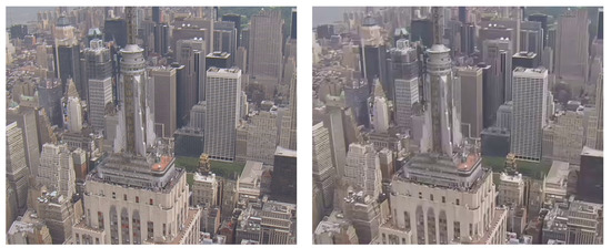Visual comparison of 2× SR results on image sample “City”, SOF-VSR (Left) and CILVSR (Right).