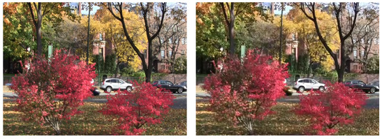 Visual comparison of 2× SR results on image sample “Foliage”, SOF-VSR (Left) and CILVSR (Right).