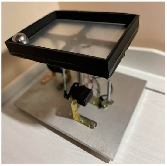 - Kopichev, M.M.; Puov, V.A.; Pashenko, N.A. Ball on the plate balancing control system. In IOP Conference Series: Materials Science and Engineering, Proceedings of the 2nd International Conference on Aeronautical, Aerospace and Mechanical Engineering Prague, Czech Republic, 26–28 July 2019; IOP Publishing: Bristol, UK, 2019; Volume 638, p. 012004. [Google Scholar] [CrossRef]