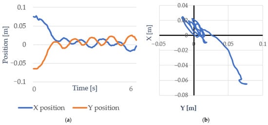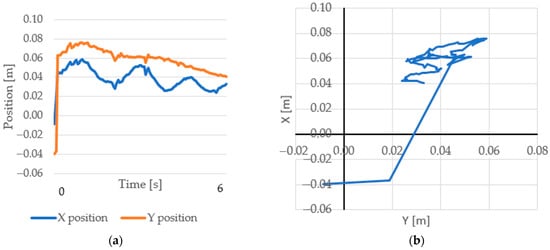 (a) Example run: X and Y positions in the real environment using PID control; (b) Positions in 2 dimensions.