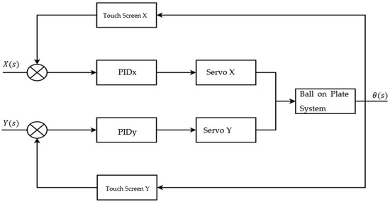 It is important to emphasize that although resistive sensors are excellent for this task because of their price/value ratio, due to the analog signal processing the application of appropriate filtering of the observed positions plays an important role in order to maintain the appropriate resolution and sampling rate. Both analog and digital filters can be used to achieve the desired result [9,10,11,12]. Since the ball-on-plate system has attracted great interest in the field of non-linear controls, many methods have been developed. PD or PID type controls, sliding mode control, Fuzzy, Neural PID and Neural Fuzzy, as well as many other adaptive control methods are some of the most notable examples [13,14,15,16,17,18,19,20].