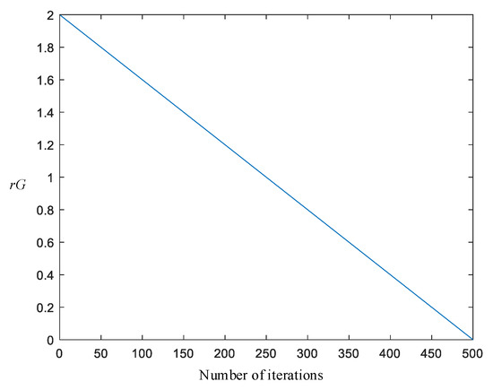 During the exploration phase, the sand cat can sense low frequencies below 2 kHz. In the mathematical model, rG represents a general range of sensitivity that decreases linearly from 2 to 0, according to the working principle of the algorithm. SM models the auditory properties of the dune cat with an assumption of 2, defined as follows.