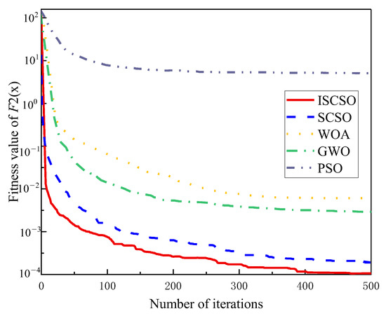 As can be seen in Table 1, for the single-peak test function F1, ISCSO finds the theoretical optimum and outperforms the other four algorithms in every respect. For the single-peak test function F2, ISCSO is slightly inferior to the native SCSO in terms of optimal values, but outperforms the SCSO and the other four algorithms in all other aspects. For the multi-peak test function F3, ISCSO outperforms the other four algorithms in all four criteria.