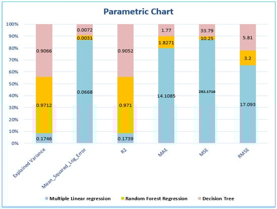 Parametric Charts highlighted the comparisons of parameters of regression models. The highest performance in terms of R2 and RMSE is the Random Forest Regressor. In addition, a comparison of regressors models is presented in Table 10.