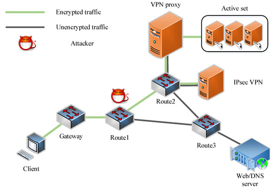 Gao, Z.; Chen, F.; Wang, Y.; He, W.; Shi, X.; Xie, G. MVPN: A Defense Architecture against VPN Traffic Hijacking Based on MTD. Electronics 2023, 12, 711. https://doi.org/10.3390/electronics12030711