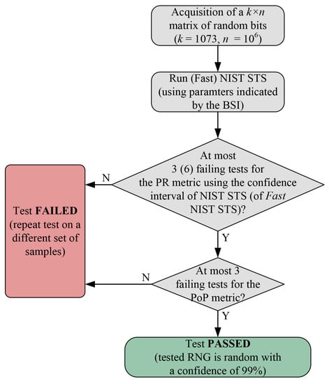 Therefore, the flow diagram for the usage of the (Fast) NIST STS can be drawn, as illustrated in Figure 6.