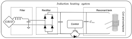 Induction heating (IH) technology is not only substituting conventional heating systems such as home cookers, but it is an alternative in those systems in which heating of a workpiece is not the final goal [1,2]. It is considered in many domestic systems or small industrial applications where the heating of an accessory or a tool is necessary for other purposes. The requirement to obtain a high profit from those final products orients the choice for a low-cost IH system.