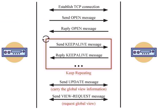 When exchanging global view information, messages are sent between controllers to keep the links linked and the information passed. We divided the messages between the controllers into five main categories, as shown in Table 2, and each message had a different function to support the global view information exchange.