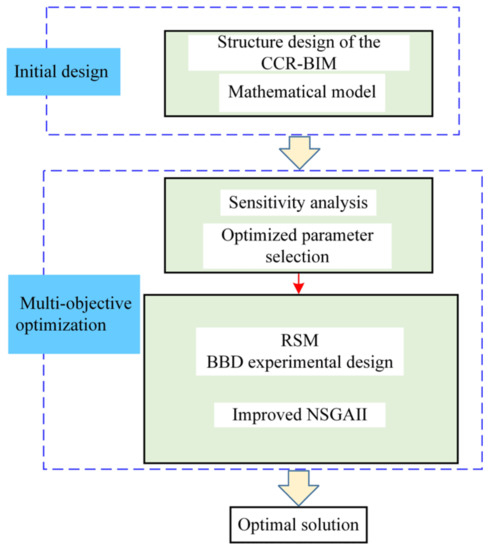 The optimization design strategy, combining RSM and the improved NSGAII, is adopted in this article. The RSM is obtained based on the Box–Behnken design (BBD), which can evaluate the nonlinear relationship between inputs and outputs and provides image analysis with continuity characteristics [21,22]. Since the optimal number of parameters in the BBD is 3–5, the number of optimized parameters is 4, which meets the requirements of the optimal parameters.