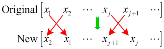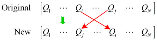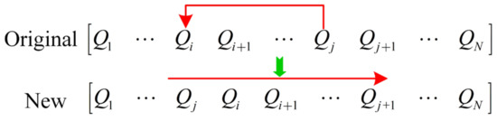 Swap operator: Two positions, Qi and Qj, are randomly selected, and the two positions are exchanged. The swap operator operation is shown in Figure 17.