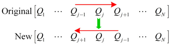 Inverse operator: Two positions, Qj−1 and Qj+1, are randomly selected, and the gene sequences between the positions are reversed. The inverse operator operation is shown in Figure 16.