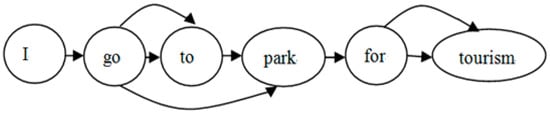 To illustrate the Jieba word segmentation process, consider the following sentence: “I go to park for tourism”. Figure 1 is as an example of the segmentation of a word by Jieba. When calculating the maximum probability path, the Jieba word segmentation is calculated from back to front.