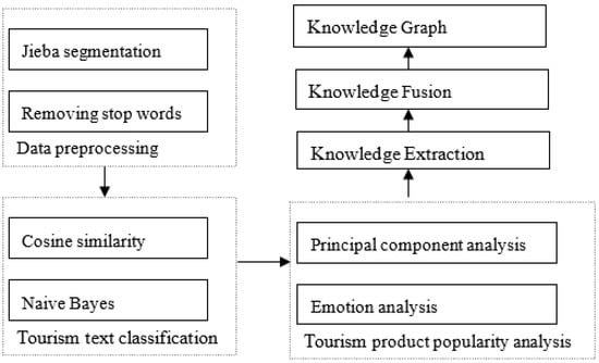Online tourism comments are a public resource. Tourists express their opinions freely through online comment platforms, which also leads to a large number of useless and repeated garbage corpora. The knowledge graph can structure heterogeneous knowledge in the field, build associations between difference sources of knowledge, easily realize the joint analysis of complex data and enable users to retrieve information more directly, conveniently and accurately []. Therefore, tourism knowledge graphs are an important structured knowledge base for tourism data mining and knowledge storage in the era of big data. In this paper, we first analyze the current state of domestic and international research on tourism knowledge graphs.