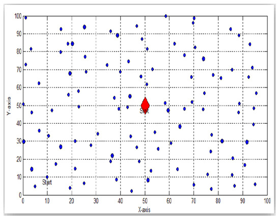 HEED protocol maximizes network lifetime by reducing communication costs and utilizing residual energy in sensors. In a set number of iterations, HEED completes the clustering phase, creates well-distributed CHs, reduces control overhead, and optimizes network lifetimes. Sensor distributions or sensor density in a network do not affect HEED [32]. Due to the fact that new CHs are always chosen and clustering starts after each interval of the clustering process time () + operation time (). Receiving and transmitting messages from neighboring sensors within a defined range is a time-consuming process. HEED defines a fixed percentage of CHs in order to begin clustering. Initial CHs probabilities are set by sensors according to the formula: