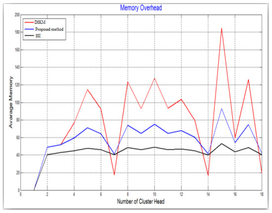 Figure 9 displays the size of memory used in cluster heads. In terms of memory expenditure in CHs, we notice in this figure that SSI is less memory expenditure compared with our method and DSKM but DSKM suffers from the different and unstable fluctuation of memory expenditure, generally, our method is relatively stable in memory usage compared with SSI and DSKM.