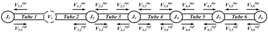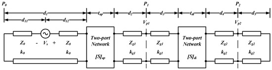 Based on the electromagnetic topology theory, the above physical model is reconstructed as an equivalent transmission line network with tubes and nodes. The equivalent circuit diagram and the corresponding signal flow diagram are shown in Figure 2 and Figure 3, respectively: