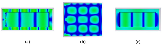 Mode303 field distributions of the two obstacles with a zero thickness value are shown in Figure 12 and Figure 13. The field distribution of the capacitive obstacles with a zero thickness value is in line with the basic model. The changes to both of them in the cavity are relatively consistent with the cross-coupling.