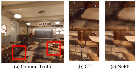 Graphically realistic rendering has a wide range of applications, including virtual reality, autonomous driving, 3D capture, and even 3D visualization; however, there are significant challenges in the photo-level rendering of the display world from any viewpoint. Traditional modeling approaches, while yielding high-quality scene geometry, are often too costly and time consuming. Therefore, researchers have developed image-based rendering (IBR), which combines scene-based geometric modeling with image-based view interpolation [1,2,3]. Despite the great progress, the method has certain problems, as, for some environments, not only do realistic and complex scenes have to be portrayed, but also light and shadow changes and visual angles. To overcome these limitations, the rise of the neural radiance field (NeRF) technique [4] has enabled closer human interaction with the scene and has taken implicit modeling to a new level, modeling the scene as a continuous volumetric field parametrized using a neural network, using MLP to minimize the loss of all observed views in the real. The new view synthesis of the scene produces stunning results.