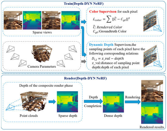 - Deng, K.; Liu, A.; Zhu, J.Y.; Ramanan, D. Depth-supervised nerf: Fewer views and faster training for free. In Proceedings of the IEEE/CVF Conference on Computer Vision and Pattern Recognition, New Orleans, LA, USA, 18–24 June 2022; pp. 12882–12891. [Google Scholar]