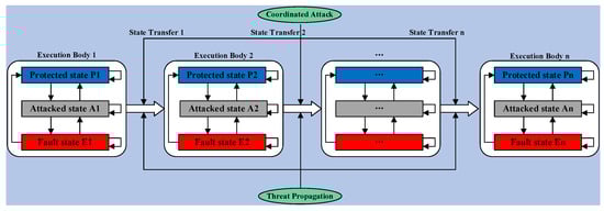 The state of the system with the executor number in the case of an attacker’s attack is , from which the overall state of the system can be obtained: