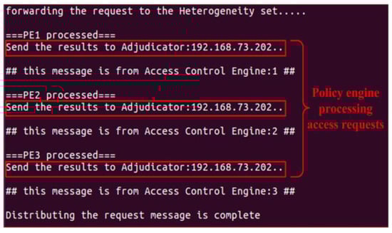 Where the entire system processing is shown in the following procedure. The distribution of the adjudicator can be centralized or distributed. The position of the adjudicator in this experiment was located after each policy engine, and the unified centralized adjudication approach was adopted. Considering that the increase in the number of adjudications will affect the response latency of the system, the process of adjudication should be reduced as much as possible while improving the security. The selection of the adjudication method is based on the security requirements of the system. In the authentication system, the security requirement is very high. Therefore, the method was adopted, as shown in Algorithm 1. It can be seen from Table 5 that the heterogeneous policy engines in the current service set all determined that the access request was passed, allowing the resource response reply to be sent to the client.