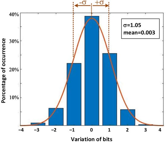 - Sinewave-input and DC-input tests: The sinewave-input test assesses the performance of the ADC when faced with a known sinusoidal signal of a certain amplitude and frequency, in order to evaluate the manner in which the ADC converts the signal. The DC-input test measures the DC noise of the signal by using histograms [,], which are graphs that show the probability density function (PDF). Noise level measurements are acquired over a specific period. They are grouped in intervals and displayed in a bar graph to show the number of measurements falling within a specific range of noise levels, and to detect abnormal noise levels or patterns in the noise distribution. The histogram shows whether most of the noise is allocated in a specific frequency range, or distributed more uniformly throughout the intervals.