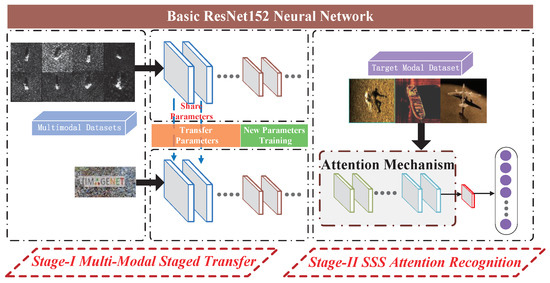 The multi-modal multi-channel multi-position attention transfer recognition model (3MATR) proposed in this paper consists of two stages: (1) multi-modal staged transfer stage and, (2) SSS image attention recognition stage. Figure 1 shows the specific framework of the proposed model.