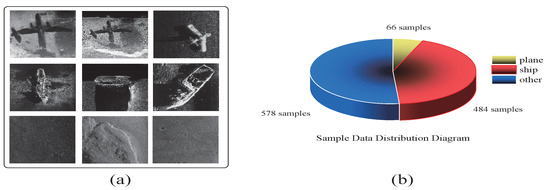 A target image dataset collected via imaging sonar is used to conduct the experiments. The dataset used in the experiment includes three types of image targets as follows: 66 planes, 484 ships, and 578 other pictures. Figure 6 shows some example dataset images. It can be observed that the image has strong noise interference, which causes considerable difficulty in accurate target identification.