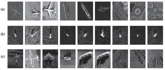 Datasets used in the experiments: (a) Grayscale optical image samples; (b) SAR image samples; (c) SSS image samples.