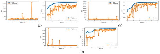As Table 3 shows, the model structures of VGGNet16 and VGGNet19 are simple and easy to train; however, their actual recognition performance is not ideal, and their recognition accuracy is only 92.56%. As shown in Figure 11, during the training process of VGGNet16 and VGGNet19 models, the recognition accuracy curves exhibit instability and jitter, as shown in Figure 11a,b. In particular, the VGGNet19 network shows a downward trend with an increasing number of epochs, and the final recognition rate is only 60%, as shown in Figure 11b. DenseNet (201, 121, 169) and ResNet (152, 101, 50) network models have similar recognition accuracies, and the ResNet101 has the optimal recognition accuracy, which is equal to 96.41%. At the same time, the recognition accuracy of the ResNet network layer decreases slightly from 96.41% for 101 layers to 95.13% for 152 layers, and the recognition accuracy of the DenseNet network layer decreases from 96.15% for 169 layers to 95.02% for 201 layers. This is because as the number of network layers increases, the features extracted by the network tend to be more abstract and detailed. As the SSS image has a large noise interference, the extracted detailed features include noise features, which directly affect the recognition performance of the network.