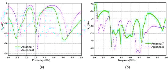 Designing of the MIMO radiator: (a) Antenna-7; (b) Antenna-8.
