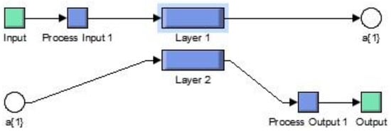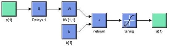 The microcontroller was programmed for real-time execution of the neural networks. Blocks were used to map the input signals from −1 to 1, and a Math Script node was used in which all the weights of the network as well as all the mathematical formulation to run the network were found. This block is connected directly to the outputs of the hardware sensors, which delivers an input vector to the network with the values of pH, COD concentration of the influent, inflow to the bioreactor and the signal coming from each of the conductivity sensors installed inside the reactor.
