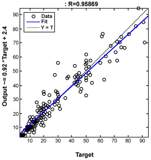 Therefore, taking into account that there are conductivity sensors placed inside the IFBR, which provide information on the expansion of the fluidized bed, it was decided to use the correlation of the result of [21] as a starting point to train an artificial neural network capable of finding a relationship between pH, influent COD concentration, inflow to the bioreactor and the signal coming from each of the conductivity sensors installed inside the reactor, to estimate the effluent COD concentration, the bioreactor biogas production flow rate (the sum of methane and carbon dioxide production), the methane production flow rate, the carbon dioxide production flow rate and the concentration of volatile fatty acids in the reactor effluent.