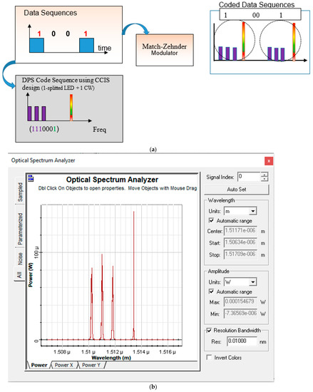 (a) CCIS design; (b) OSA spectrum of coded data using the CCIS technique.