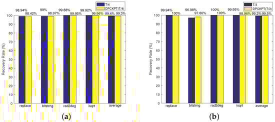 (a) The result of the recovery rate of the periodic checkpointing recovery approach with a checkpoint interval of T/4 and that of DLCKPT that redeploys the checkpoints of checkpoint interval of T/4. (b) The result of the recovery rate of the periodic checkpointing recovery approach with a checkpoint interval of T/3 and that of DLCKPT that redeploys the checkpoints of checkpoint interval of T/3.