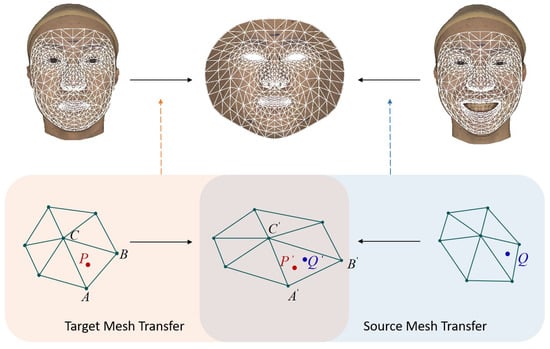 is transferred to in the UV coordinate system, so the mapping of target point P is defined as . The same method can be used for the mapping of the source point, Q.