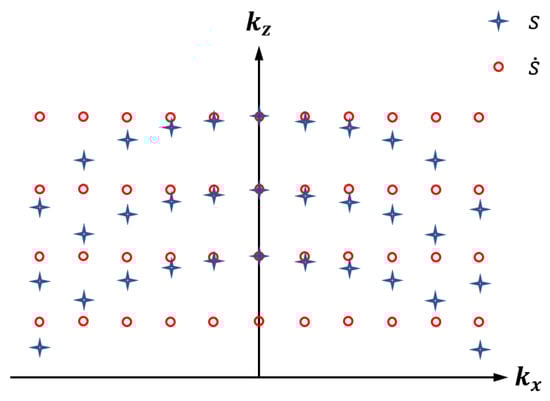 To discuss the interpolation, the Algorithm 1 would be discretized. The transceiver is sampled uniformly in the azimuth and height dimensions, and the -th sampling position is denoted as , where , , ; , , ; and denote the sampling intervals in the azimuth and height dimensions, respectively. Then, stacking all the samples of in Equation (3) gives,